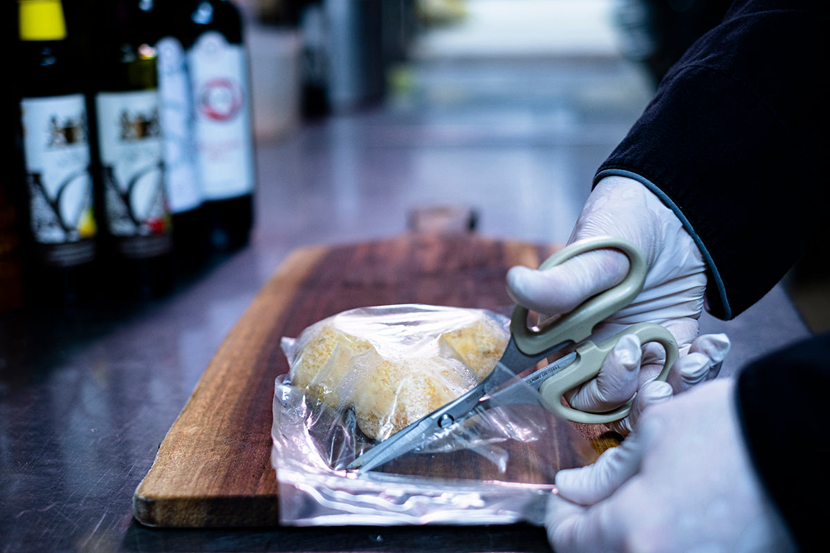 自然解凍後に約180℃のオイルで約5分揚げる、又はオーブントースターで7,8分温めてお召し上がりください。