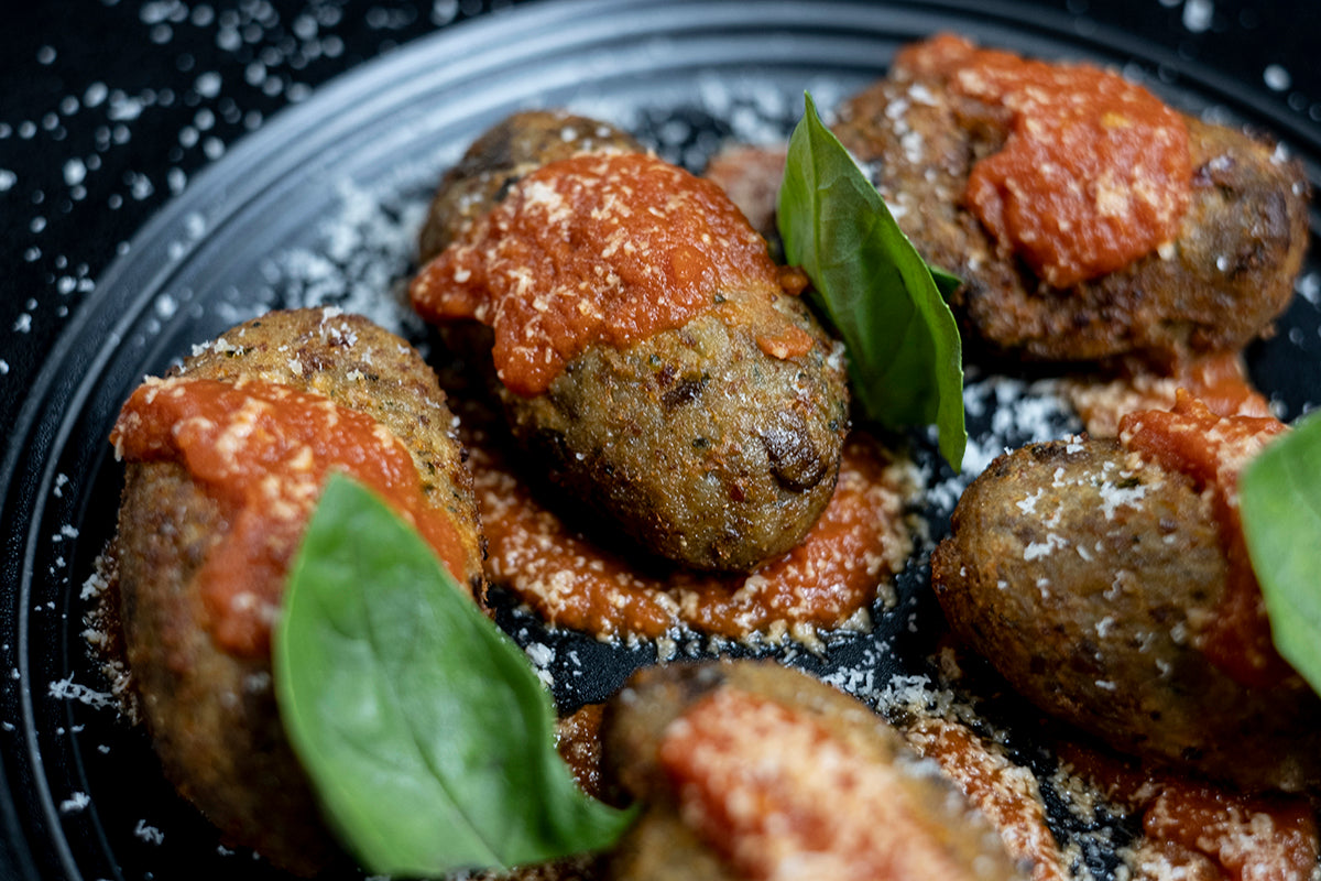 Eliolocanda's specialty: Frozen Eggplant Polpette made with spicy eggplant from Ukiha, Fukuoka
